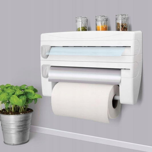 حامل ورق المطبخ 4 في 1 (ورق الطبخ - زجاجات بهارات - ورق ألمنيوم - أكياس بلاستيكية)