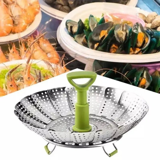 سلة طهي بالبخار قابلة للطي من الستانلس ستيل