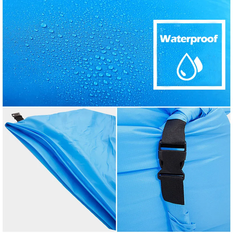 السرير القابل للنفخ مصنوع من بوليستر مقاوم للماء قوي ومتين وهو خفيف الوزن وله ميزة مضادة للدموع ويمكن استخدامه لفترة طويلة.