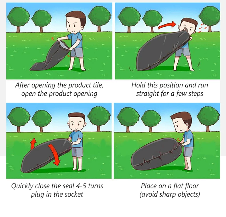 لا تحتاج إلى مضخة الهواء. ببساطة فتحه ضد الرياح وخفقت من خلال الهواء لملء المتسكعون. قد تحتاج إلى القيام بذلك 3-4 مرات. ثم لفة الحواف في ، مشبك ومجرد استخدامه!