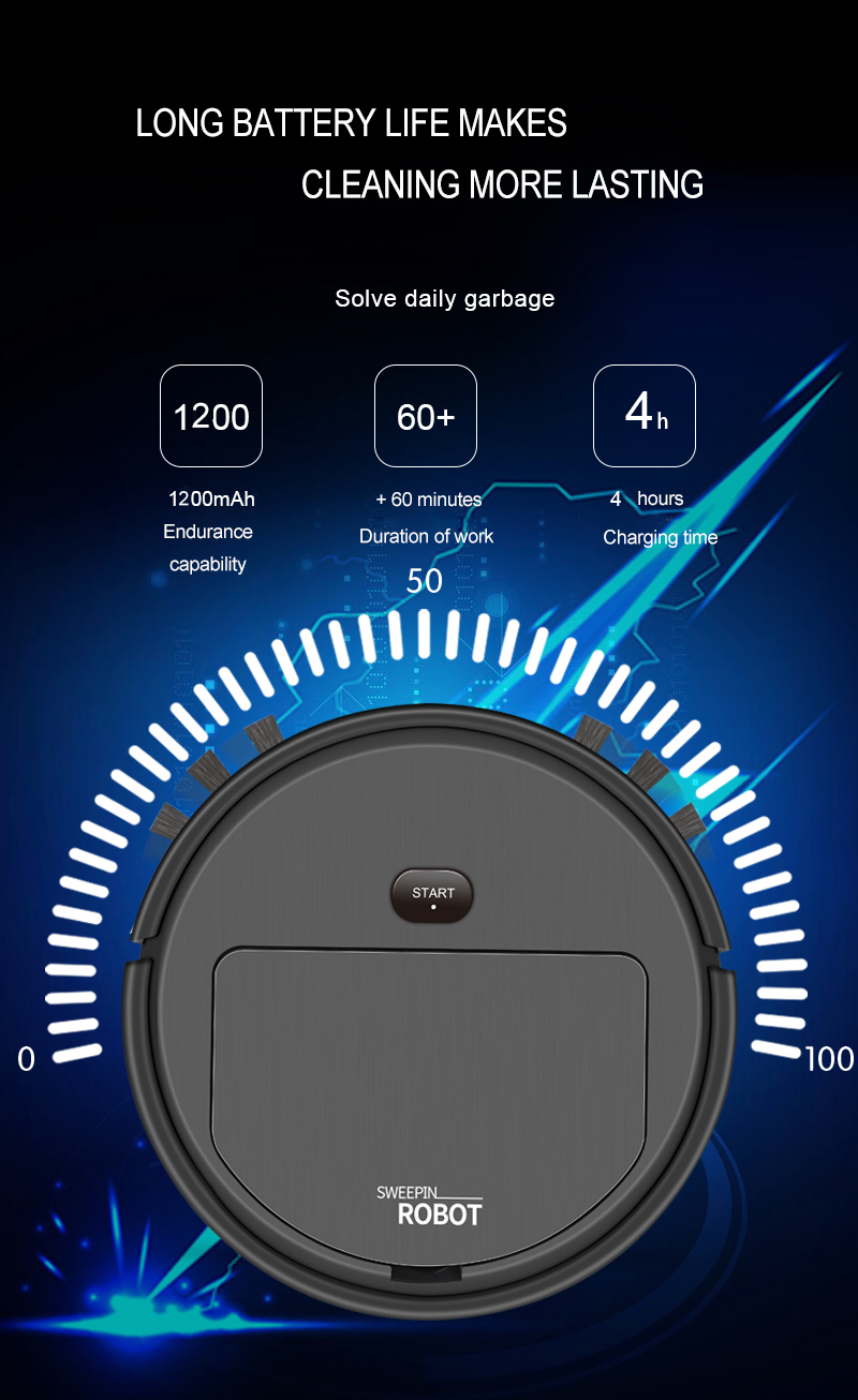 تصميم فائق النحافة: تصميم نحيف للغاية، يمكن للمكنسة الكهربائية أن تنزلق بسهولة أسفل السرير والأريكة لتنظيف الأوساخ والأوساخ أسفل السرير والأريكة ، مما يحقق تنظيفًا شاملاً بتغطية عالية ومعدل فشل منخفض للغاية