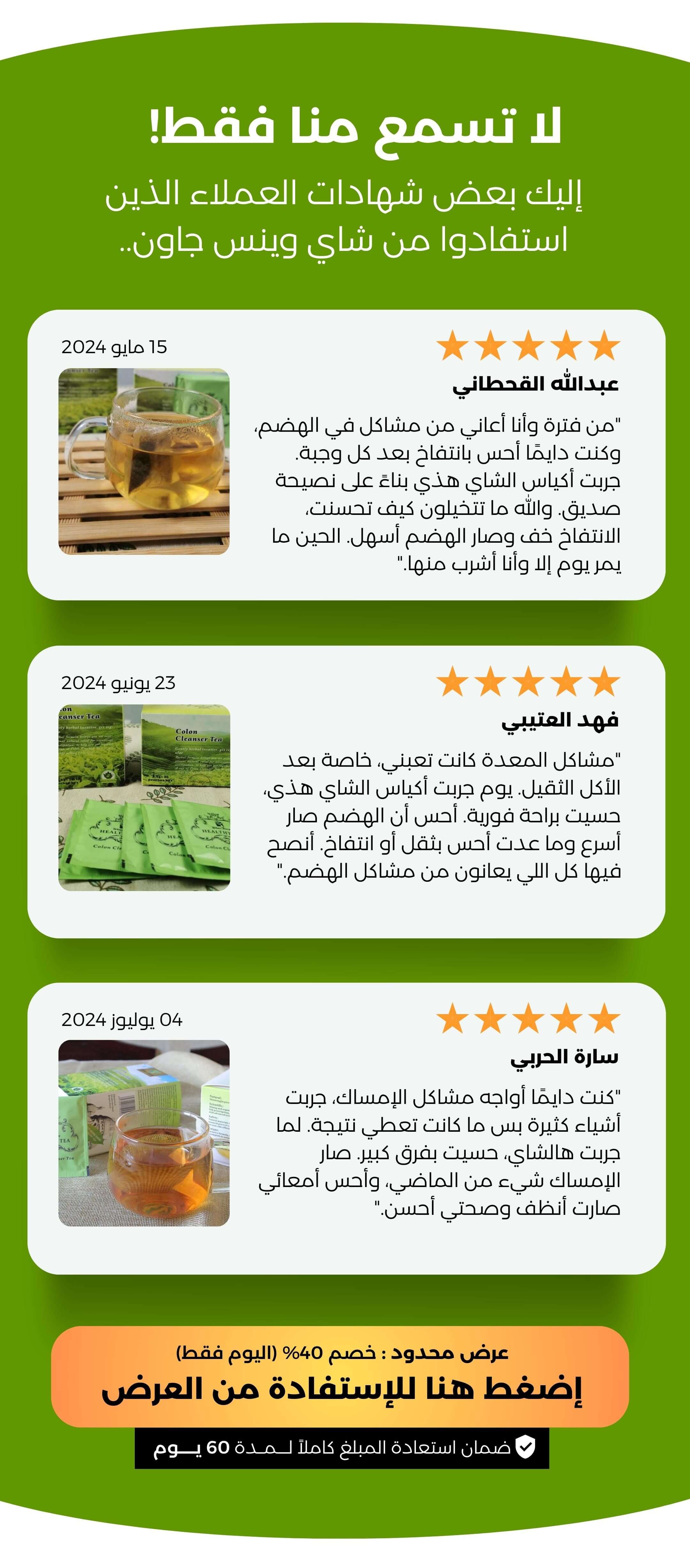 شاي علاج القولون الأصلي .. أول علاج نهائي لمشاكل الجهاز الهضمي