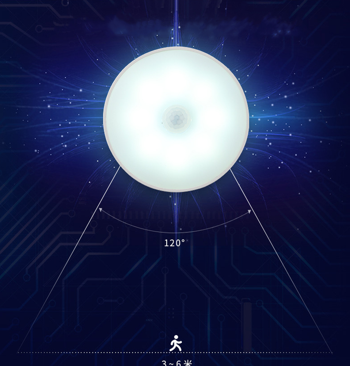 ، 3-5 متر الاستشعار عن بعد 120 درجة ، 30 ثانية ضوء تلقائيا قبالة. مثالية للسلالم والممرات والخزائن.