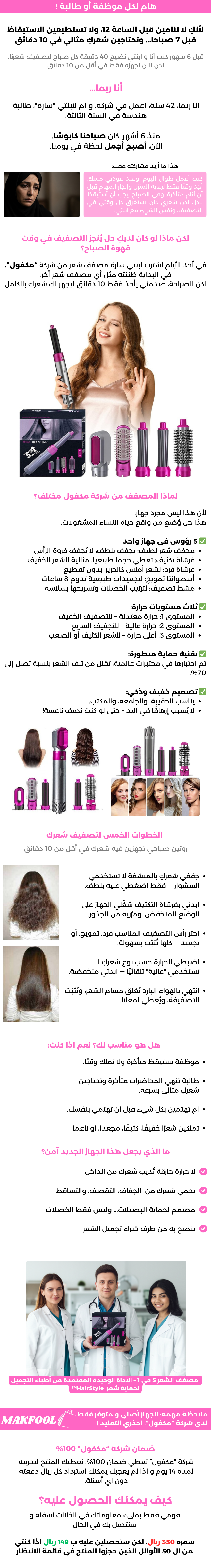 مصفف الشعر خمسة في واحد الاكثر مبيعا 2025 - للموظفات والطالبات