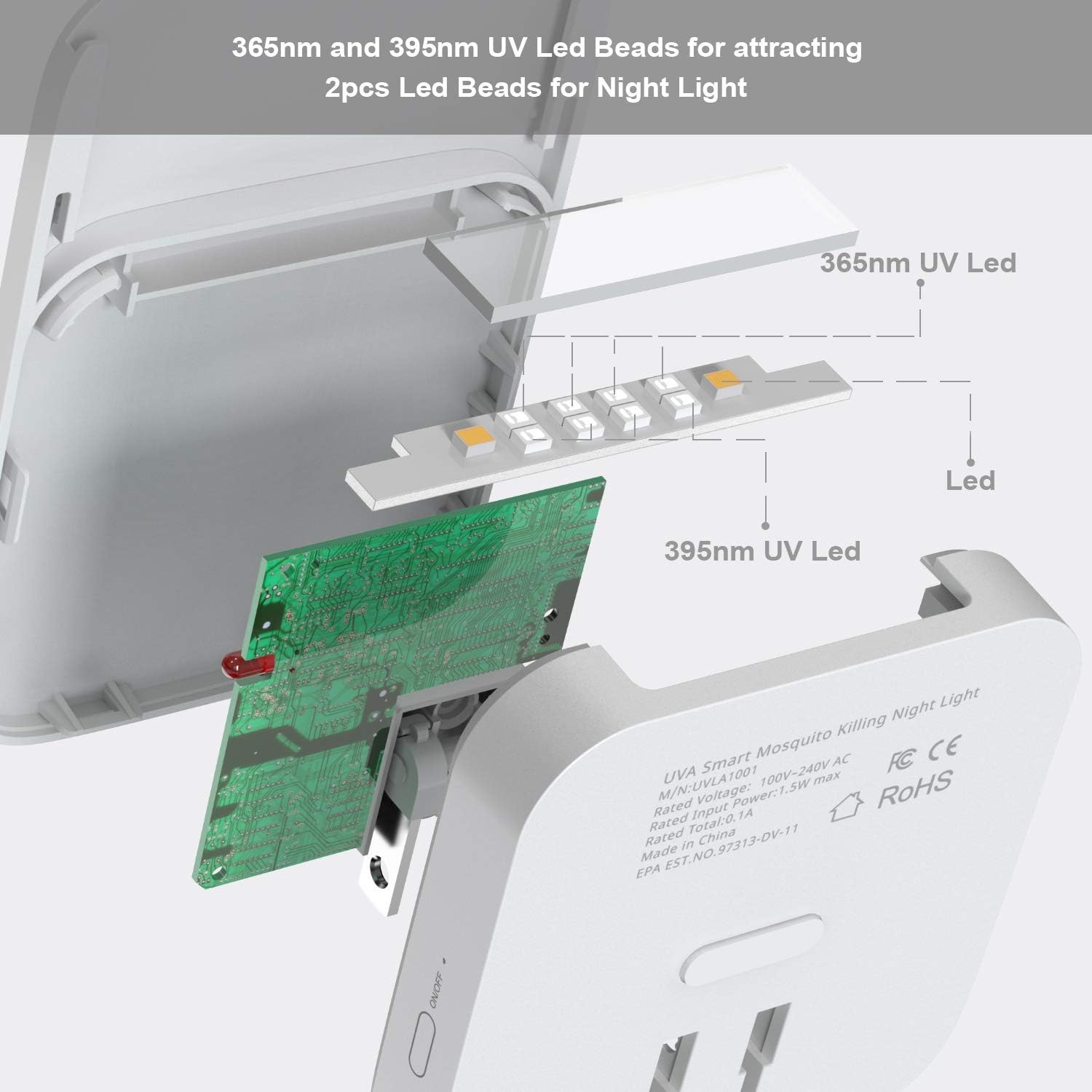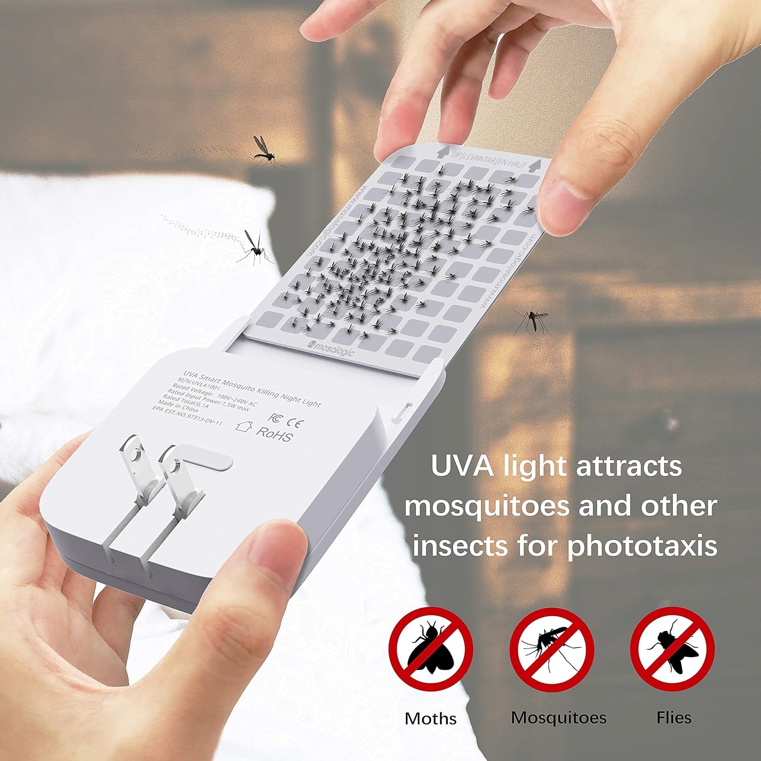 صديقة للبيئة وآمنة: سيتم توجيه الضوء على الحائط لتجنب إصابة عينيك. تعتبر هذه الطريقة أكثر أمانًا من مصائد البعوض التقليدية، التي تنبعث منها الأشعة فوق البنفسجية مباشرة في الهواء. أيضًا، لمنع سقوط المنتج، يوجد غراء مزدوج الجوانب على المنتج لجعله ملائمًا بشكل أكثر ثباتًا في قابس الحائط.