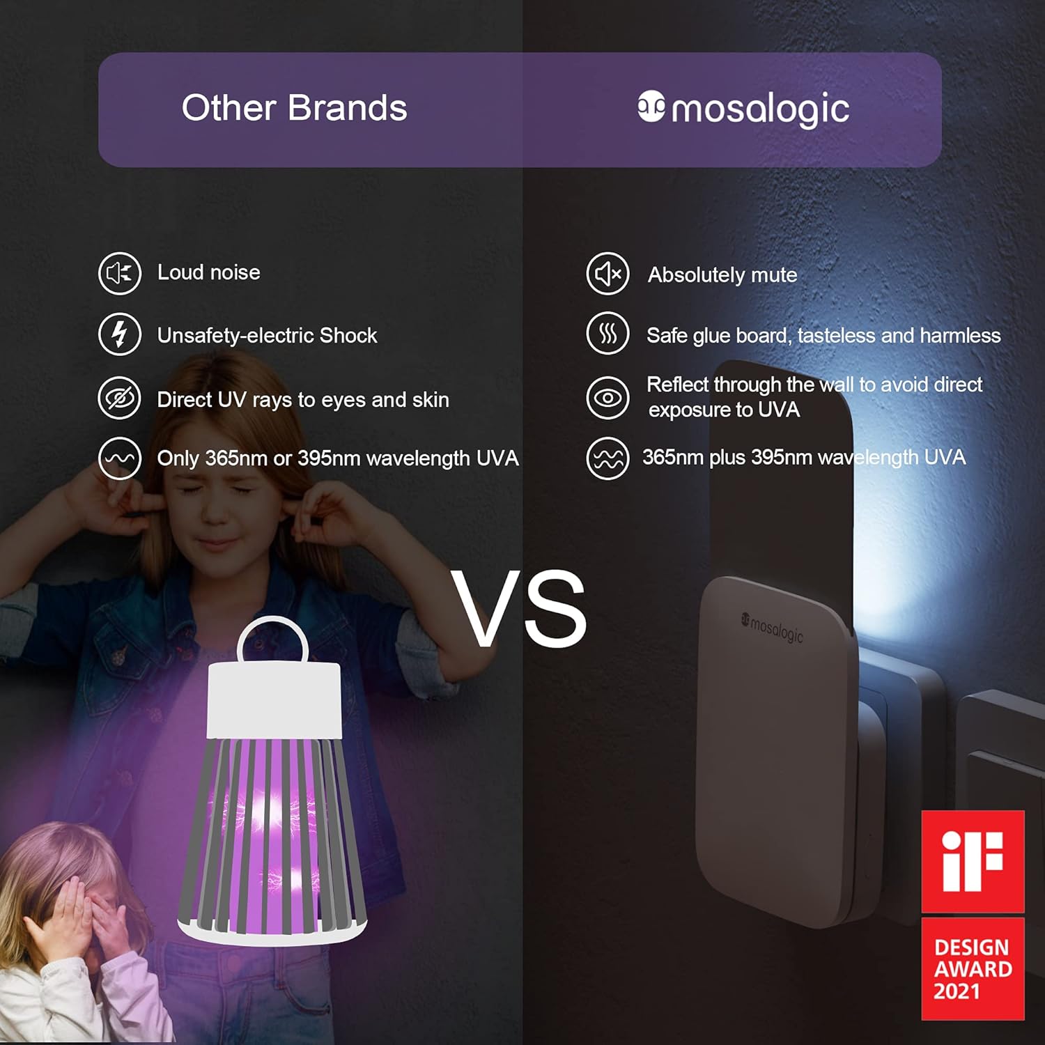 صاعق البعوض: يحميك Mosalogic Zapper أنت وعائلتك من البعوض والذباب الذي يمكن أن يحمل البكتيريا والفيروسات. يستخدم هذا المنتج نوعين من ضوء الأشعة فوق البنفسجية، بأطوال موجية تبلغ 365 نانومتر و395 نانومتر، وهو أمر شائع لأجهزة قتل البعوض لجذب البعوض والبعوض والذباب....