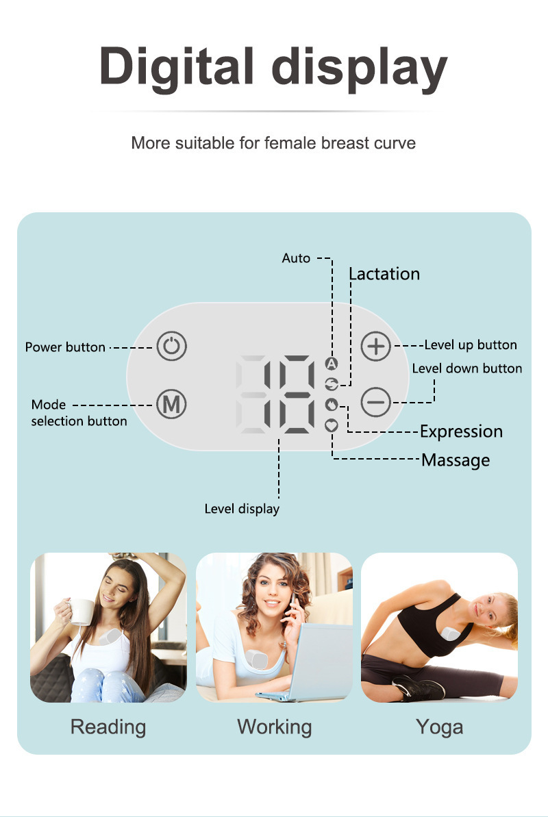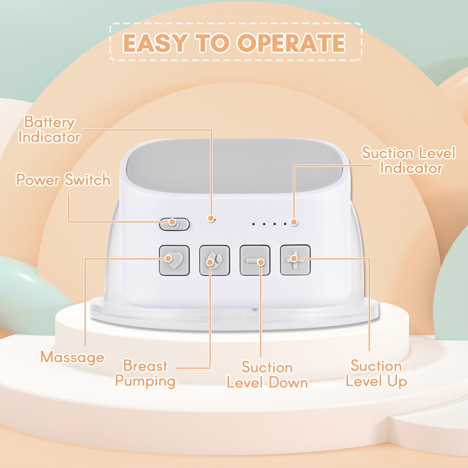 【1 × مضخة بدون ألم】تحتوي مضخة الثدي القابلة للارتداء اي بي صن على 3 أوضاع و12 مستوى وشاشة رقمية تضيء حتى تتمكن من ضبط السرعة والإيقاع بسهولة. قم بإيقاف التشغيل، وستتذكر ذاكرته المكان الذي توقفت فيه آخر مرة. مصممة لمحاكاة نمط المص الطبيعي للطفل بشكل أفضل لضمان منح الأمهات المزيد من الراحة وأن الأم تنتج المزيد من الحليب في وقت أقصر.