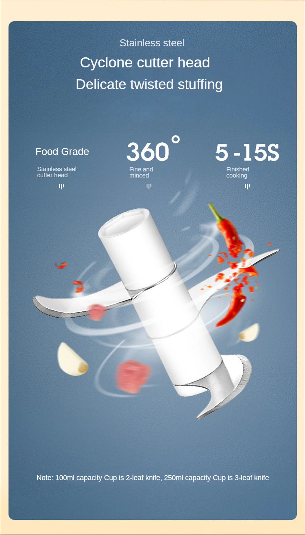 2. تقطيع سريع: شفرة حادة من قطع الثوم يمكن أن تقطع بسرعة الثوم والتوابل والمكسرات والخضروات واللحوم ومكعبات الثلج ، وما إلى ذلك ، وهو مناسب جدا للأطعمة الصغيرة. يمكنك استخدامه للطهي ، مكملات الأطفال ، مشروبات العصائر.