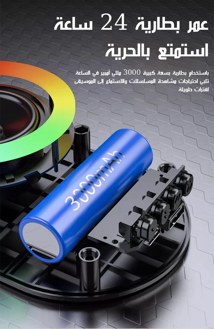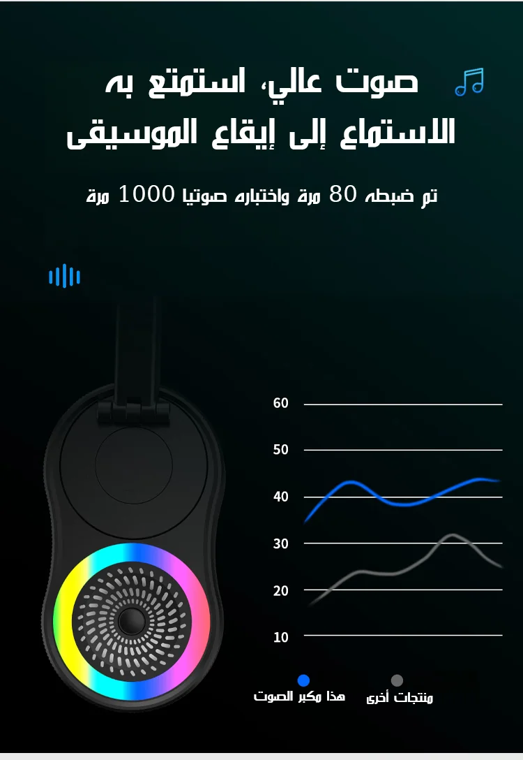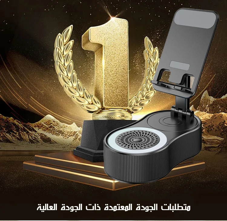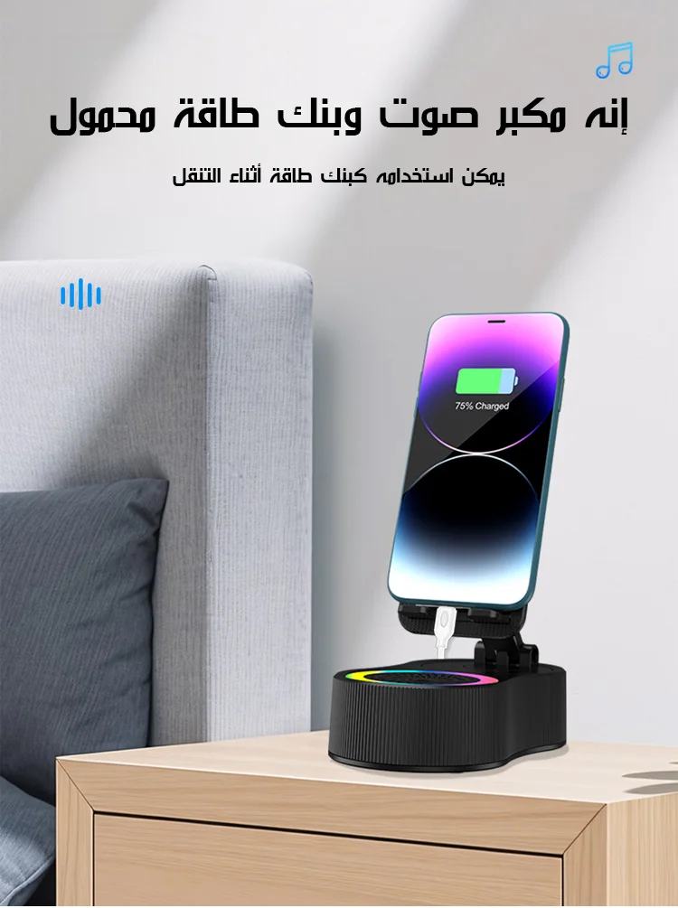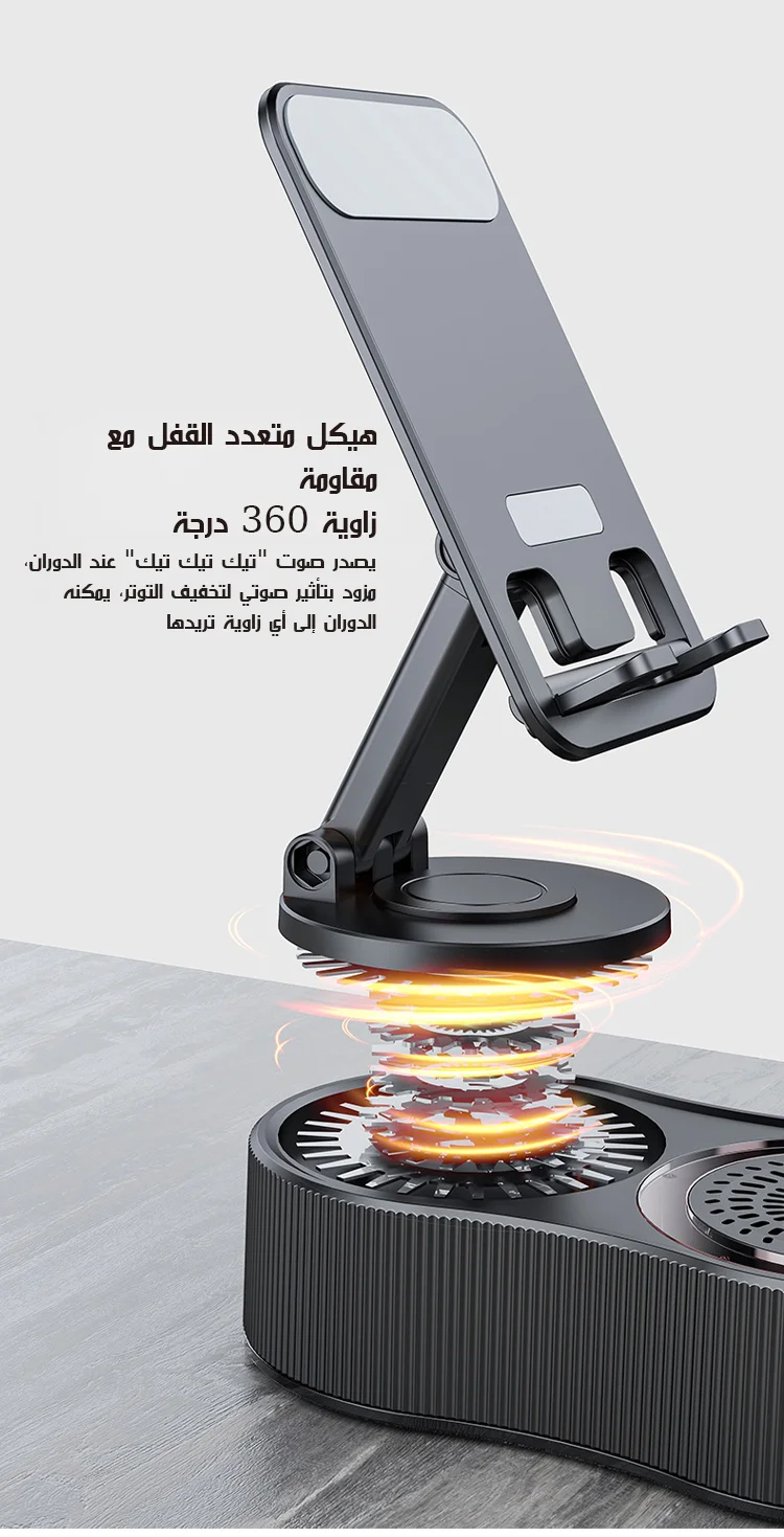 مكبر صوت بلوتوث مع حامل هاتف دوار 360 درجة وقابل للارتفاع، مكبر صوت صغير محمول مزود بإضاءة محيطية