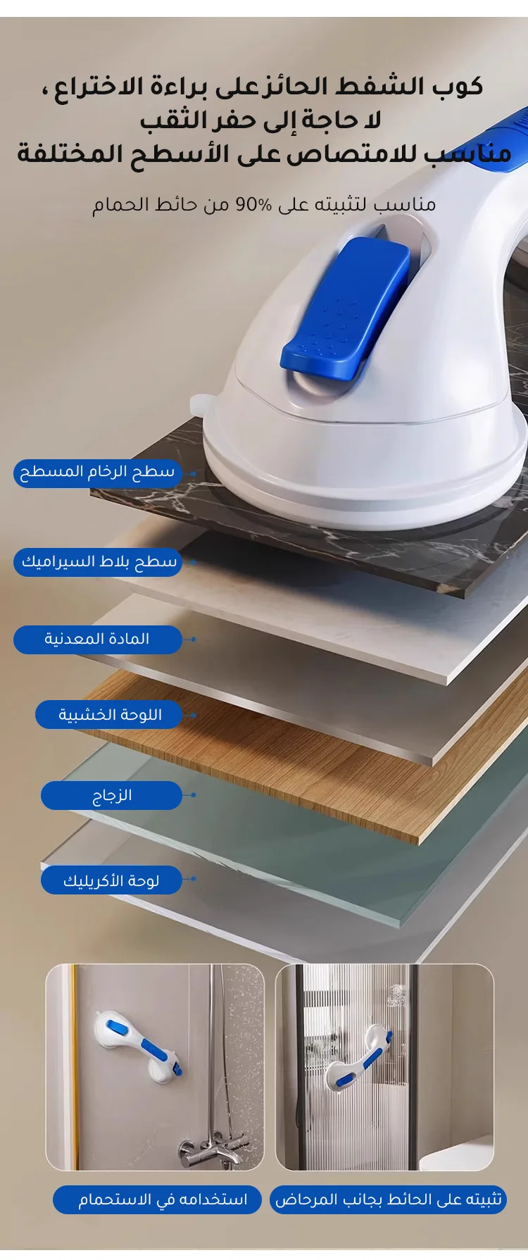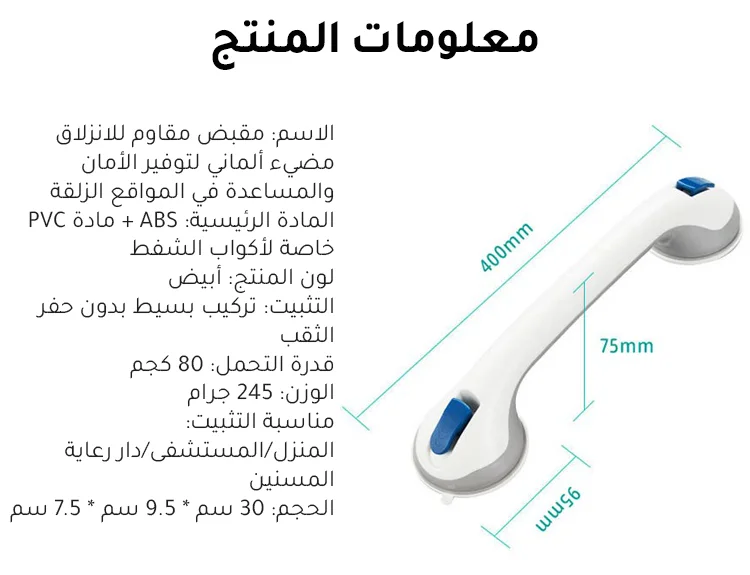 مقبض مقاوم للانزلاق مضيء ألماني لتوفير الأمان والمساعدة في المواقع الزلقة