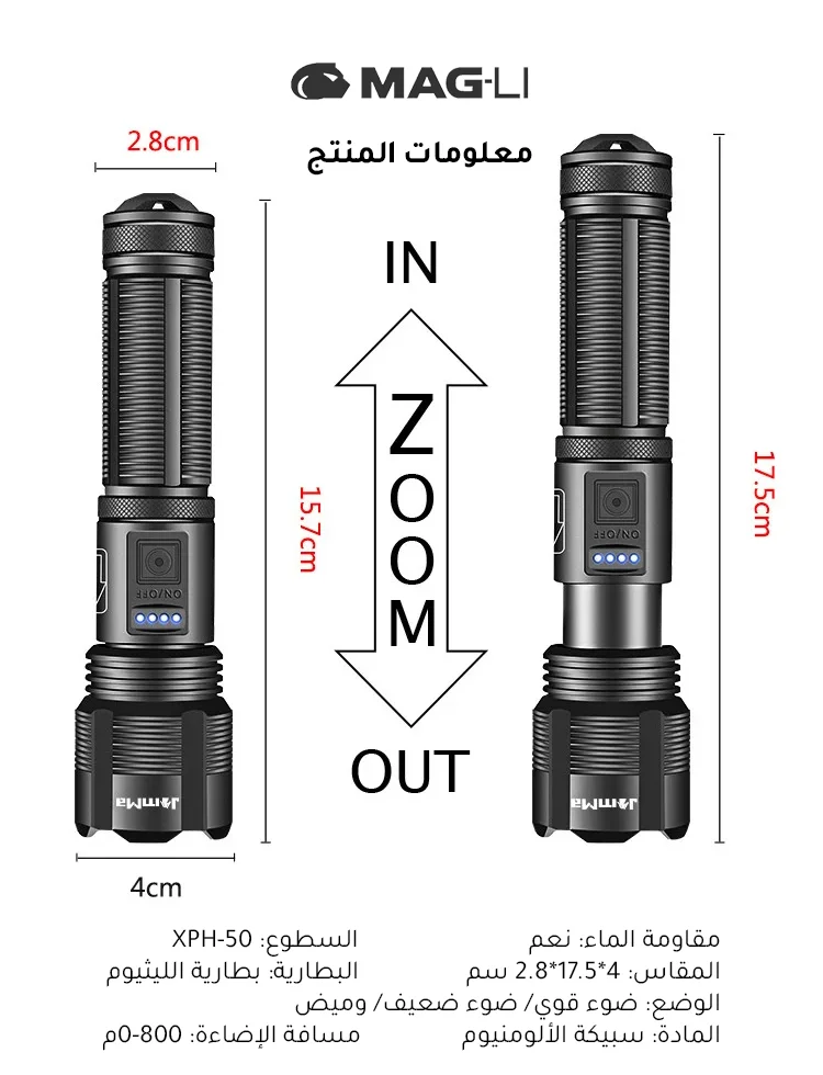 مصباح يدوي عالي السطوع مقاوم للماء